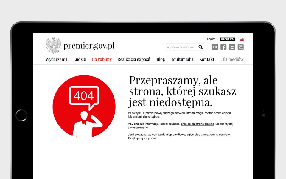 „Kancelaria premiera uruchomiła nowy serwis premier.gov.pl. Nowoczesna szata graficzna oraz unikalne i bardziej uporządkowane treści to tylko niektóre z wprowadzonych zmian. Przede wszystkim nowa strona jest dużo bardziej przyjazna dla osób z niepełnosprawnością.”